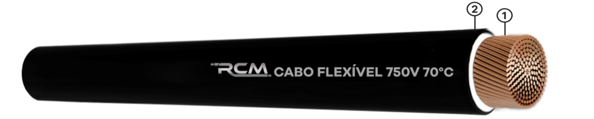 Formado com fios de cobre, têmpera mole, encordoamento classe 5 e 6 (extra flexível) atendendo à norma ABNT NM 280.
