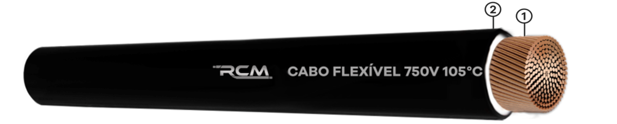 Formado com fios de cobre, têmpera mole, encordoamento classe 5 e 6 (extraflexível) atendendo à norma ABNT NM 280.