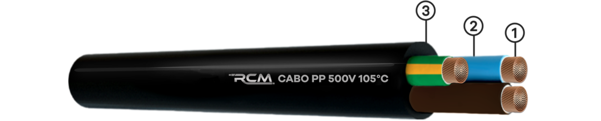 Formado com fios de cobre, têmpera mole, encordoamento classe 5 (extraflexível) atendendo à norma ABNT NM 280.